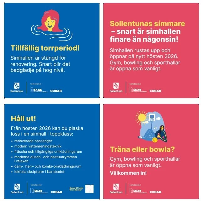 Jag har skrivit till en mängd projekt inom Sollentuna kommun – bland annat dessa skyltar som informerar om aktuella bygg- och renoveringsprojekt i kommunen.